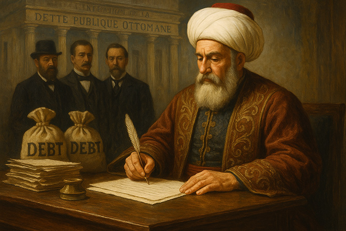 Desde mediados del siglo XIX, la combinación de gastos militares, guerras regionales, pérdida de territorios tributarios y acceso a crédito externo en condiciones adversas condujo a una crisis de deuda. Tras la suspensión de pagos de 1875, el Decreto de Muharrem (diciembre de 1881) redujo formalmente la deuda pero, a cambio, estableció la Administración de la Deuda Pública Otomana (OPDA), una institución controlada por los acreedores europeos que administraba ingresos fiscales clave (p. ej., monopolios de sal y tabaco, ciertos aranceles). En la práctica, la OPDA se convirtió en un órgano autónomo dentro del aparato imperial y un mecanismo estructural de injerencia económica extranjera.